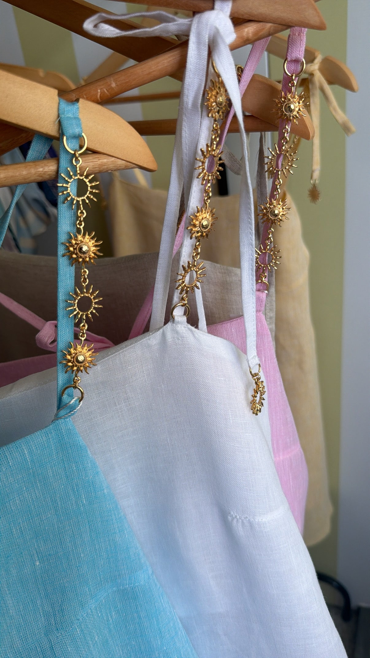 O destaque especial está nas alças adornadas por delicados símbolos solares e finalizadores exclusivos, que não escurecem com o tempo. Um detalhe autêntico que reflete a essência da luz e do mediterrâneo.